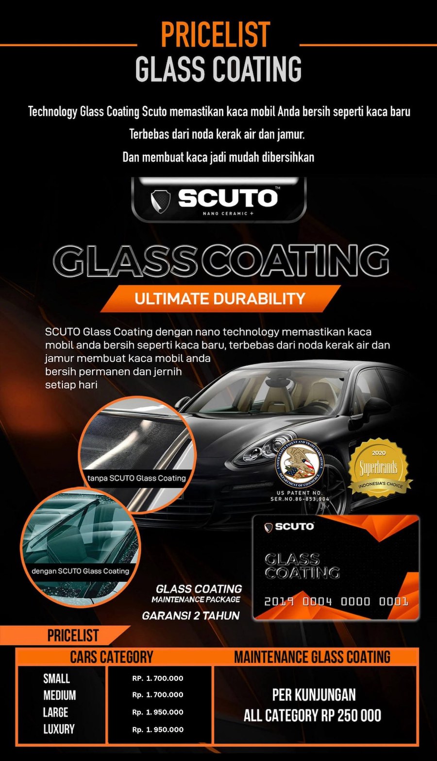 Pembelian Scuto Glass Coating merupakan pelengkap untuk perlindungan mobil kesayangan Anda. Drive your pride!
